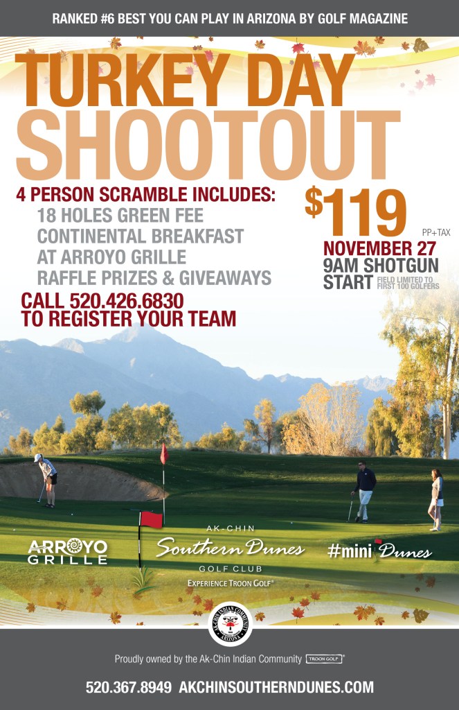 Join us for the annual Turkey Day Shootout, Thursday, November 27! This Tournament is open to the public.